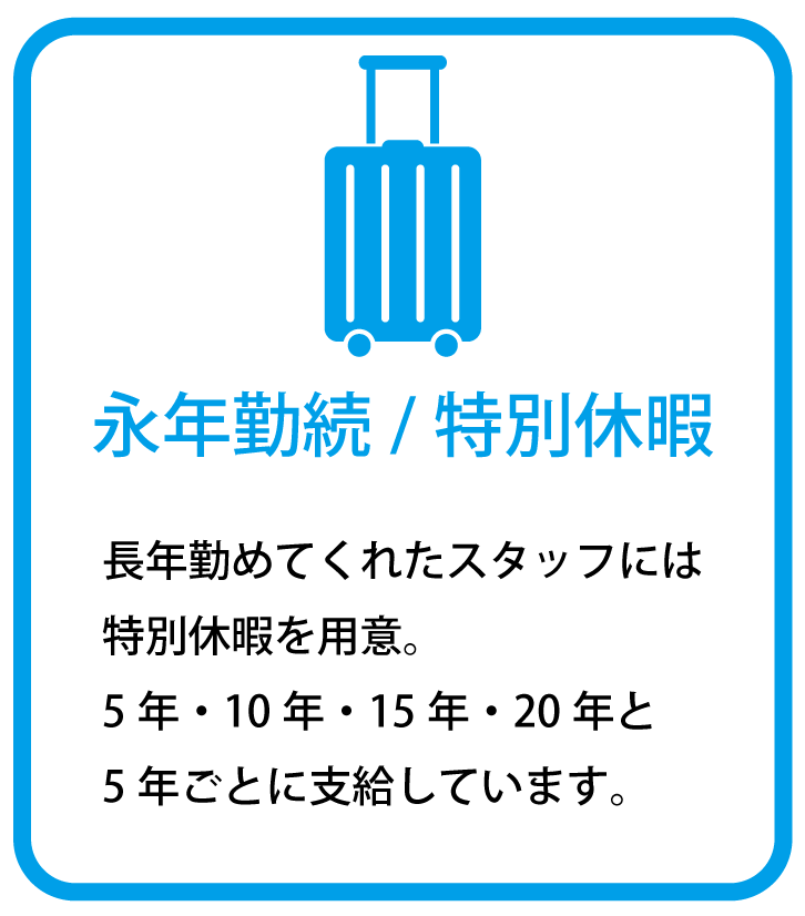 | 休日休暇 | 毎週火曜、第1・3月曜、完全週休2日、夏季冬季、有給休暇 |